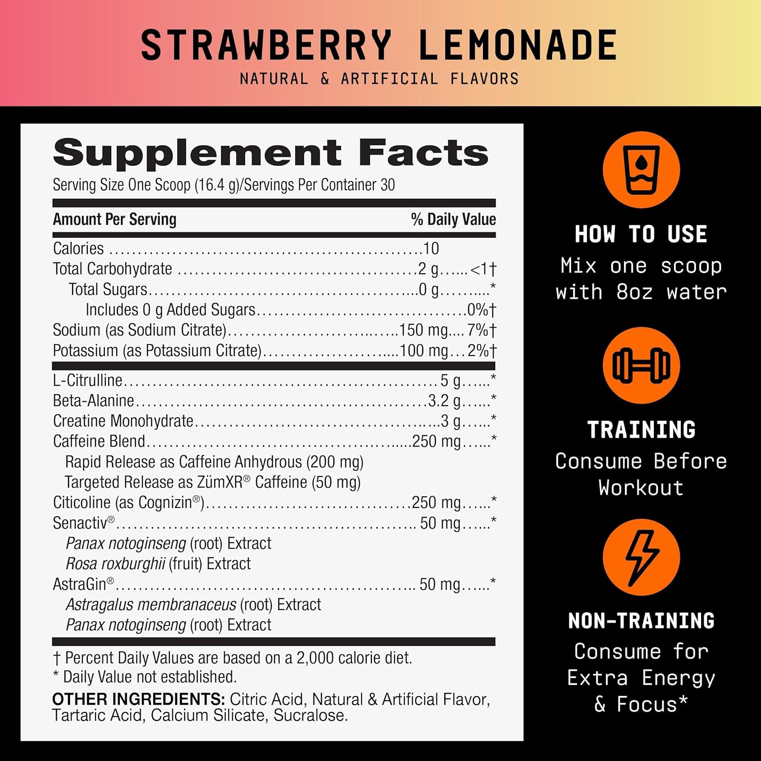 - High Energy Pre Workout Powder: Contains Caffeine, Creatine, L-Citruline and Beta-Alanine for intense energy and endurance during workouts