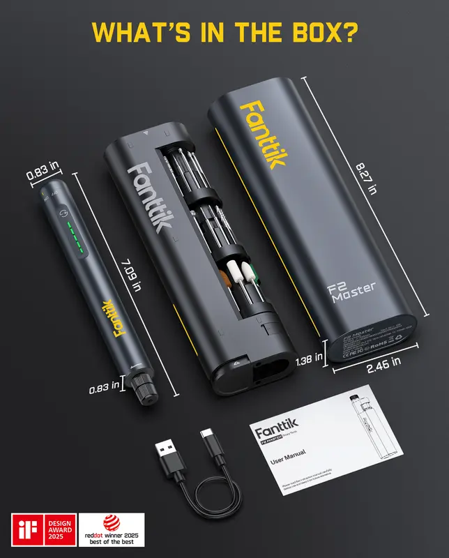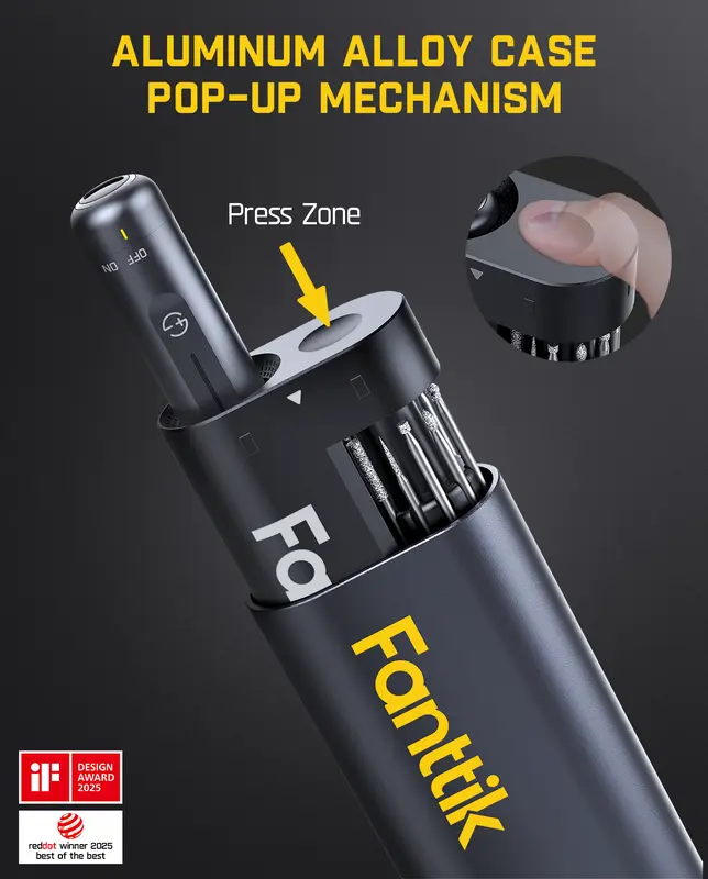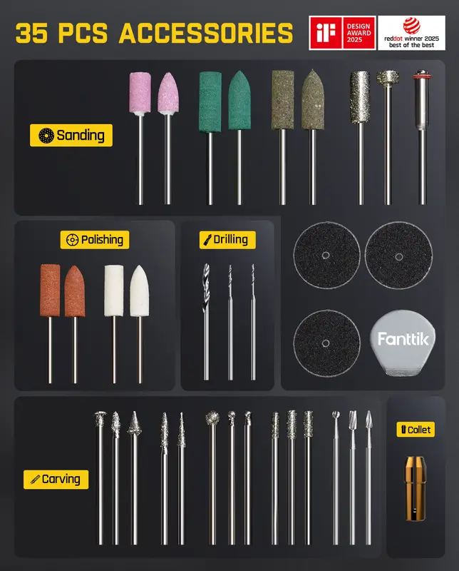 Fanttik F2 Master Mini Cordless Rotary Tool Kit 4V, Brushless Motor 25000 RPM, Revostor Hub, 35 Accessories, Portable Lightweight Design Drill Bits, for 3D printer