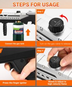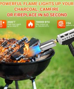 【Powerful Cooking Torch】Our Cooking torch heats up to over 3000° F with ease, 700,000 BTU of maximum heat output to cook your food quickly and efficiently.【Versatile Application】The Propane torch is great for sous-vide cooking, grilling steak & bell peppers, caramelizing sugar atop creme brulee, melting cheese and toasting bread crumbs. It can also be used to light your charcoal grill, campfire, fireplace and anything else you can think of.【Wide Fuel Adaption】The Charcoal Starter can be used with propane, MAPP, MAP-Pro gas. whatever you’ve got to hand, our kitchen cooking torch can easily connected to these fuel.【Adjustable Flame Control】Adjustable flame knob of the sous vide torch for searing can control the flame to meet the different needs of users. From melting cheese or making creme brulee on a low heat, to lighting charcoal or campfires on a high fire【Powerful and Easy to Use】The extra-large flame covers a wider area than other charcoal torches, making searing a snap. Safety one-touch piezo ignition, and you can control the flame size by turning the fuel flow knob.