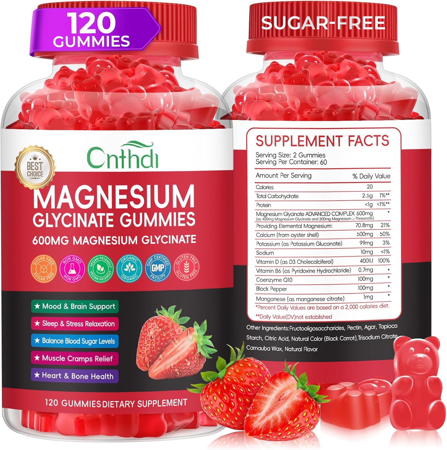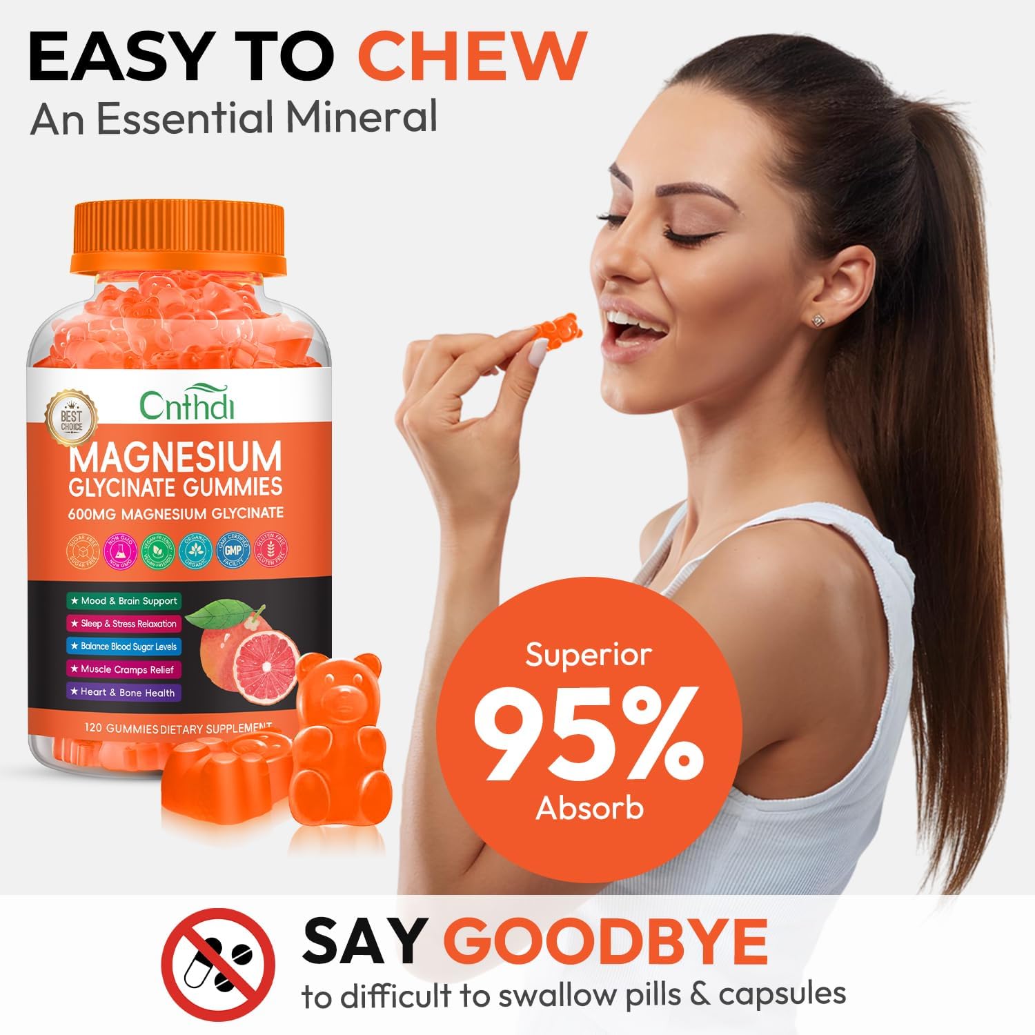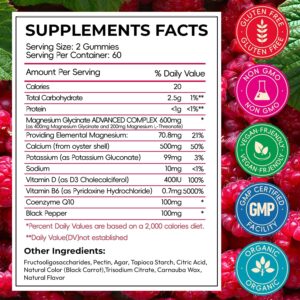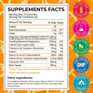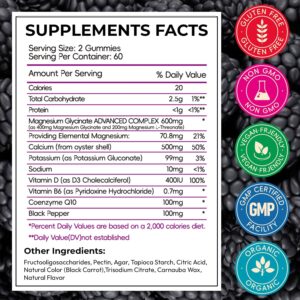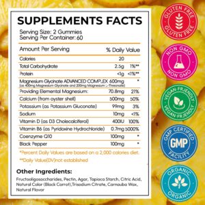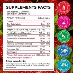 Magnesium Glycinate Gummies for Adults, High Absorption Magnesium and Potassium Gummies with L-Threonate, Calcium, B6, D3, Sugar Free Chews, Relaxation, Stress Relief, Night Rest