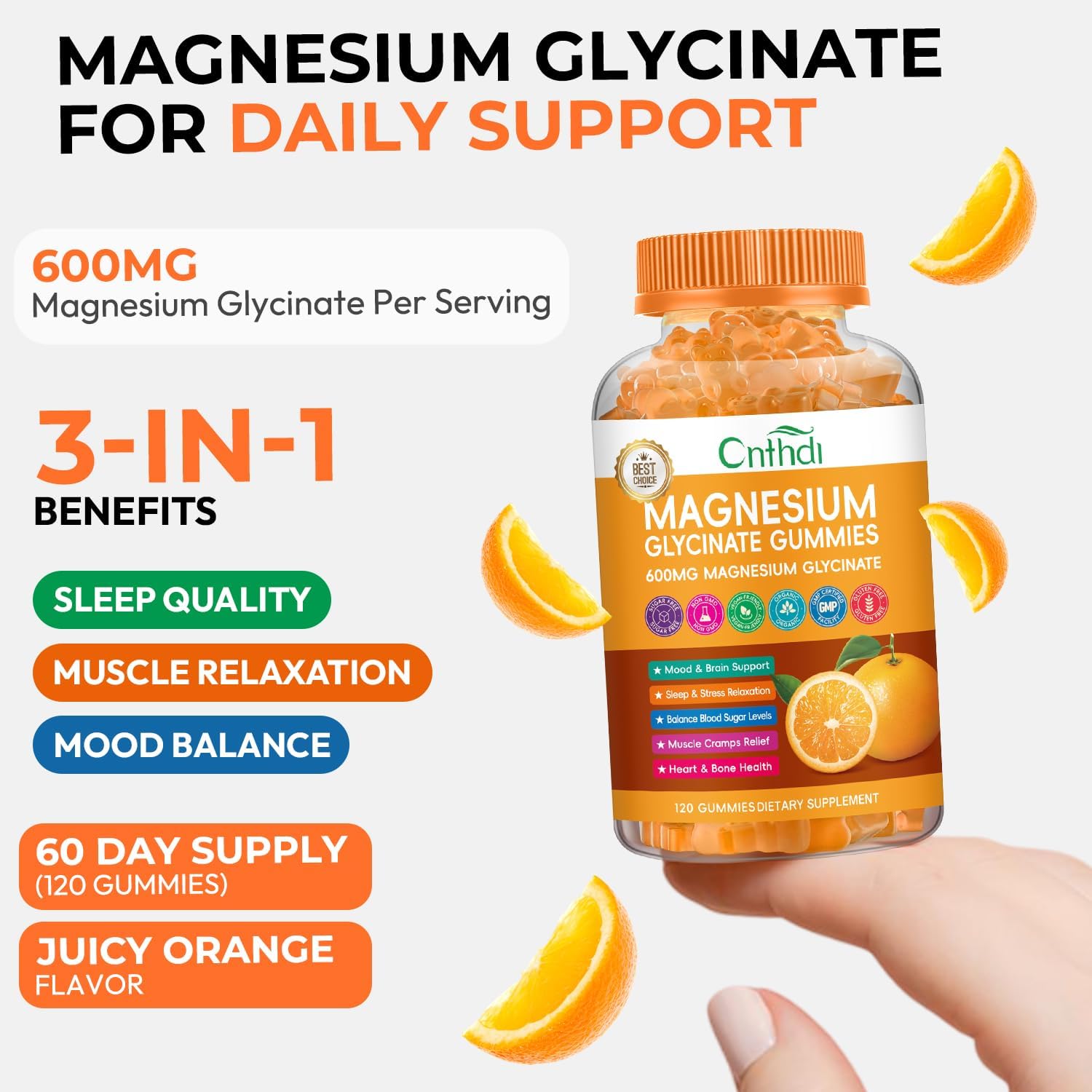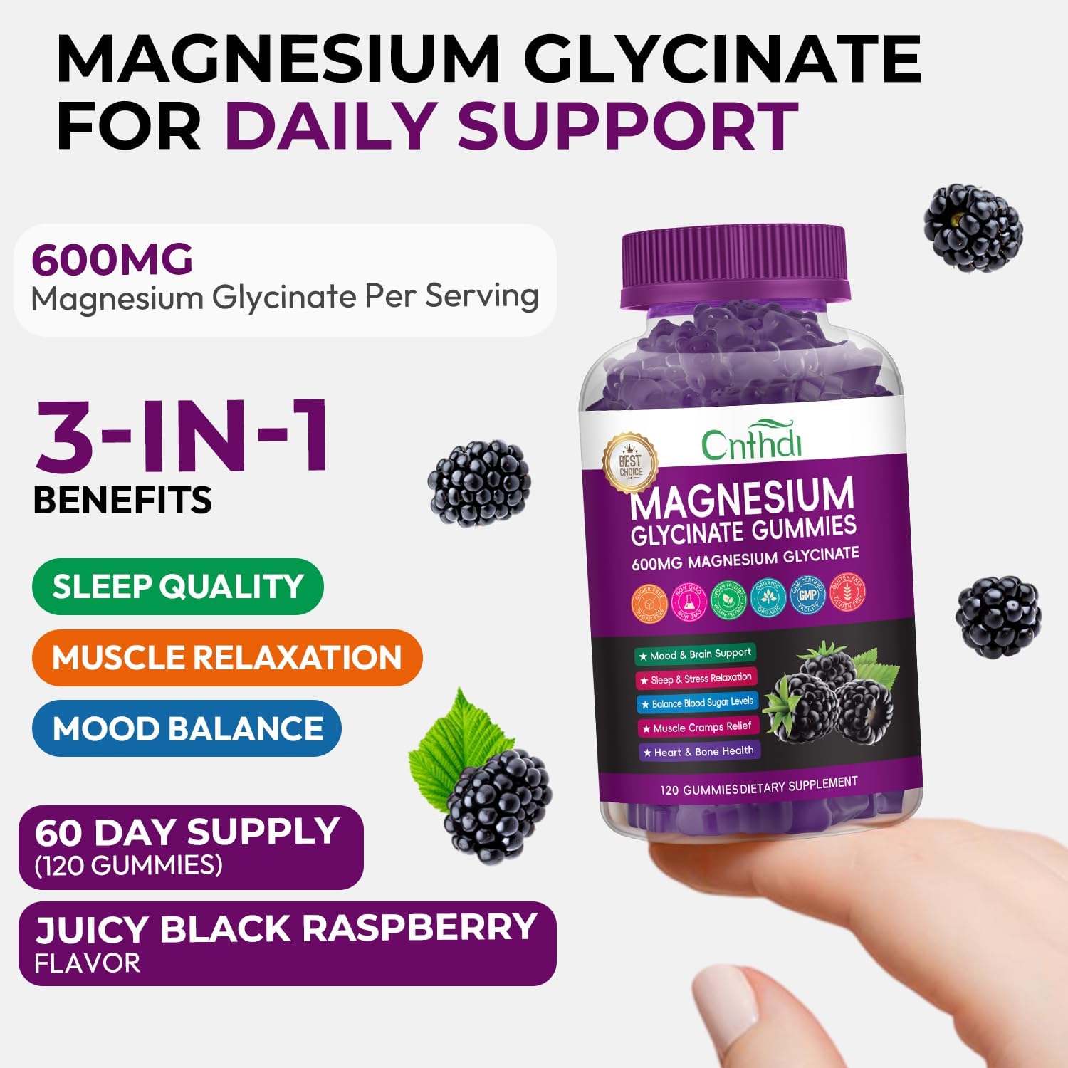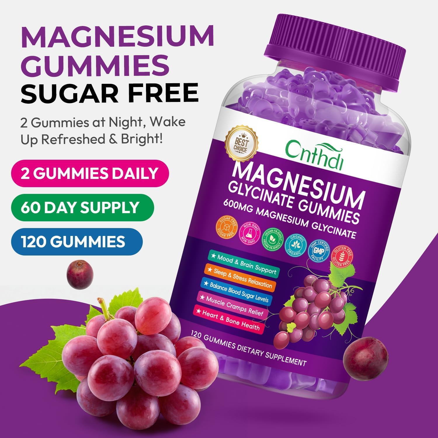 Magnesium Glycinate Gummies for Adults, High Absorption Magnesium and Potassium Gummies with L-Threonate, Calcium, B6, D3, Sugar Free Chews, Relaxation, Stress Relief, Night Rest